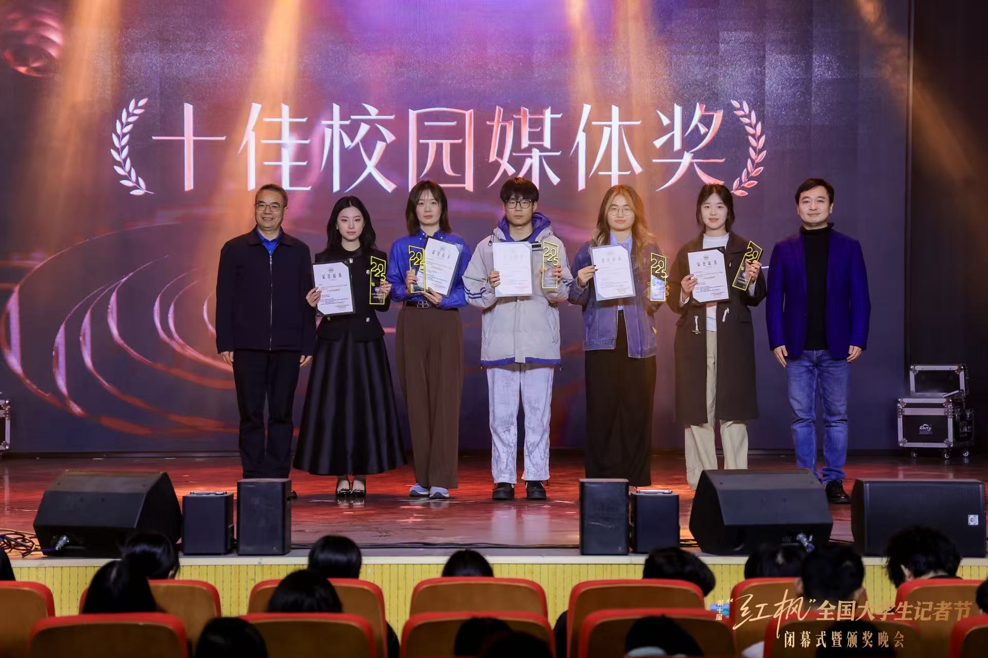 本网讯(学生记者 杨超 胡佳琦)12月29日,第十届红枫全国大学生记者节闭幕式暨颁奖晚会在湖南大学举行。我校大学生融媒体中心获评全国“十佳校园媒体”, 中心成员、生物科学技术学院本科生陈笑宇荣获“十佳校园记者”称号。