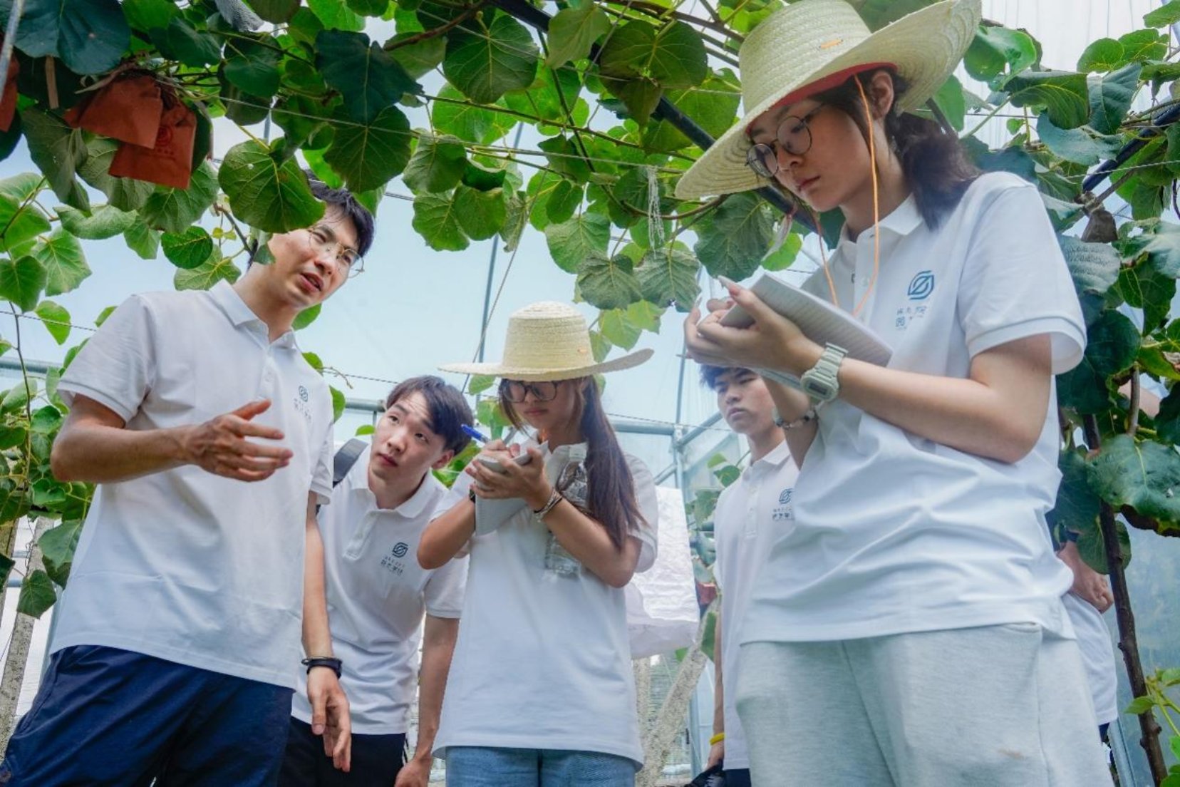 每年暑期“三下乡”,园艺学院参与的学生都要完成“六个一”:参加一堂田间党课、参观一次革命旧址、开展一次互动讲解、体验一次种植采收、完成一份集体经济问卷、实施一次田间技术指导。