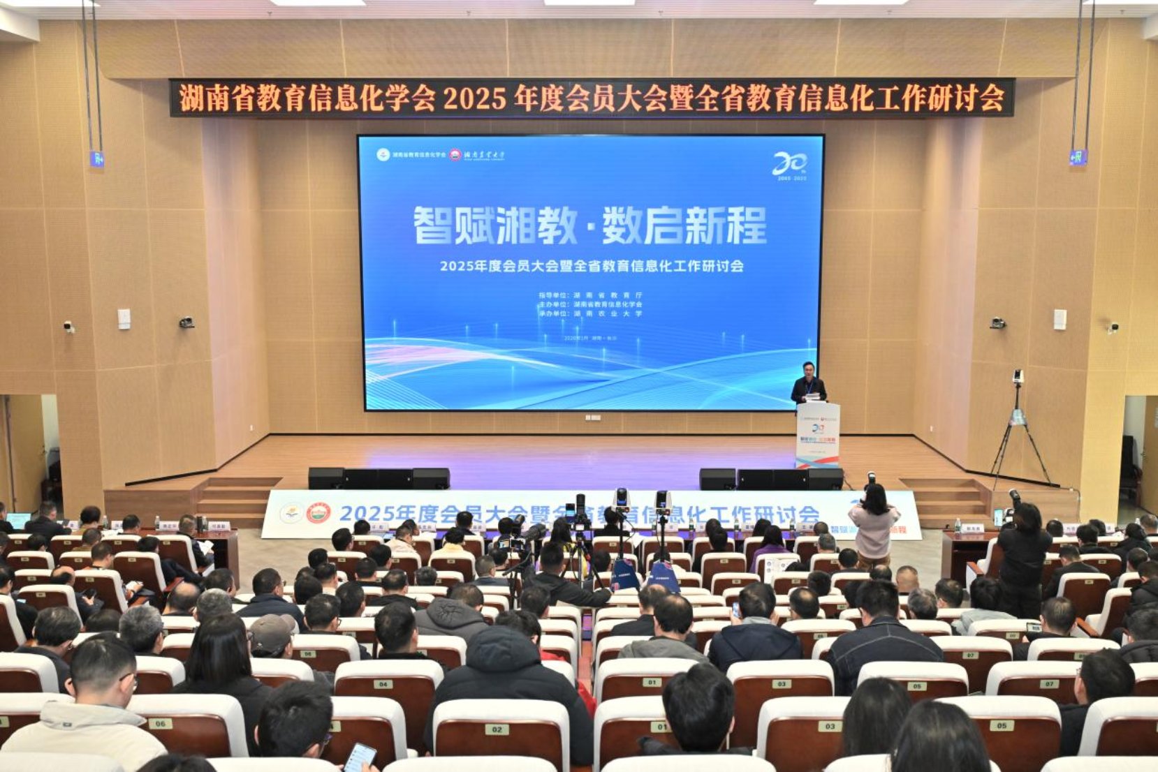 本网讯(信息中心 张弼 刘志勇)1月9日至10日,湖南省教育信息化学会2025年度会员大会暨全省教育信息化工作研讨会在长沙岳麓山实验室举行。会议以“智赋湘教,数启新程”为主题,汇聚全省250余家单位的400余位高校领导、专家学者及企业代表,共同总结教育信息化成果,研讨人工智能赋能教育高质量发展的路径,谋划“十五五”期间教育数字化发展布局。本次大会标志着湖南教育信息化已从“建系统、搭平台”迈向“强应用、促融合”的新阶段。