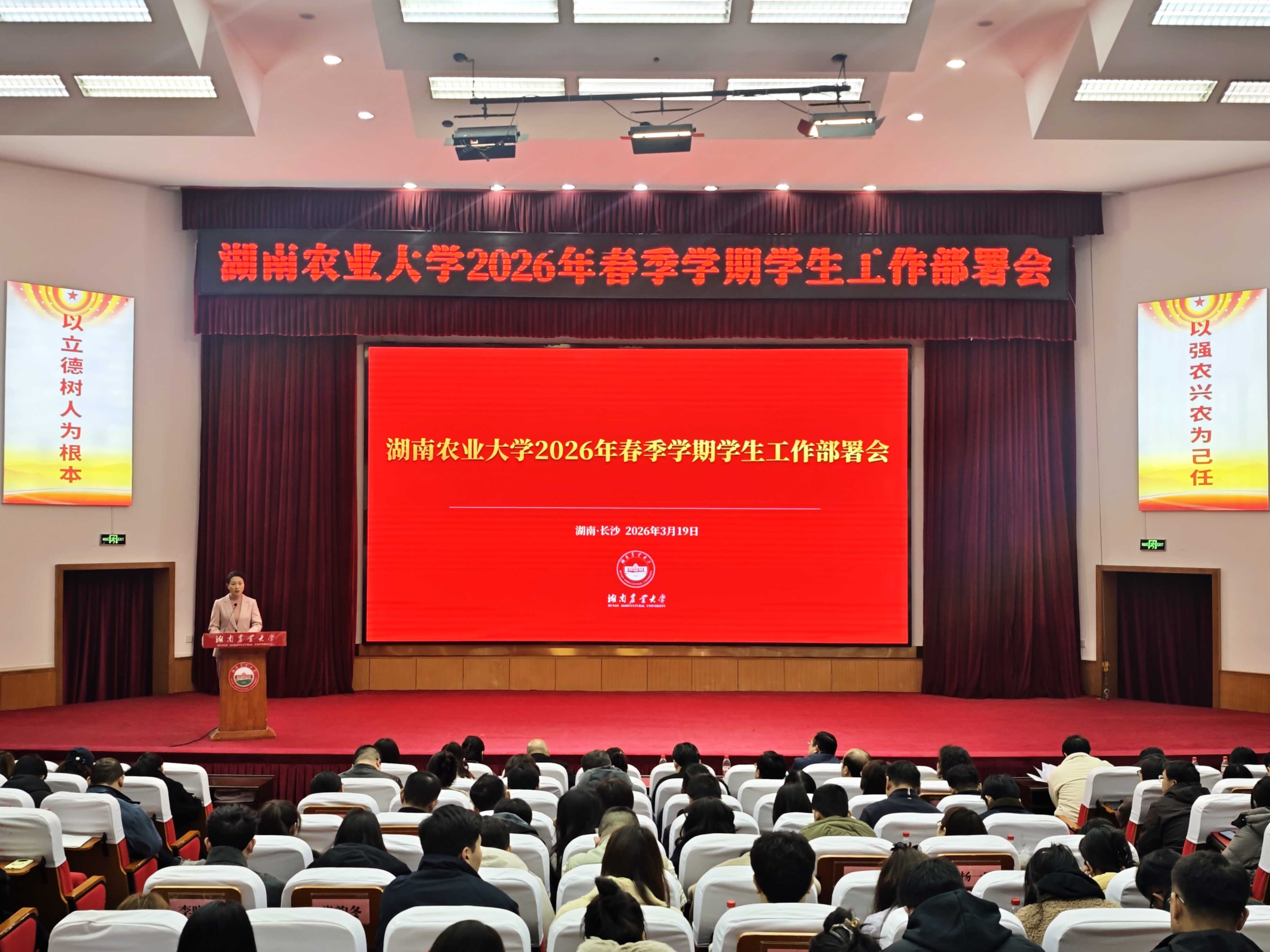 本网讯(学生工作部 朱逸飞)3月19日上午,学校在修业讲堂召开2026年春季学期学生工作部署会,校党委委员、副校长覃红燕出席,学生工作部、研究生工作部、团委等部门相关负责人,各学院分管学生工作副书记和全体辅导员参会。会议由学生工作部、人民武装部部长李姣主持。