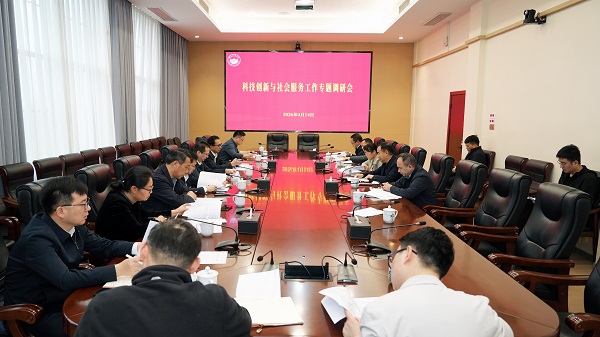 本网讯(社会服务处 裴昌胜 科技处 何振宇)4月14日上午,学校科技创新与社会服务工作专题调研会在第一教学楼401会议室举行。校党委书记兰勇主持调研会,校党委副书记陈光辉,校领导伍小松出席,相关职能部门主要负责人参加会议。
